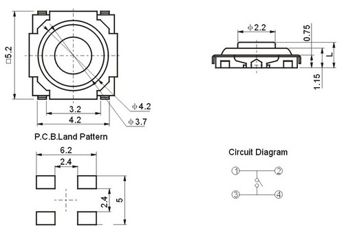 當前位置:撥動開關 >> 舊版產品 >> 輕觸開關 >> 輕觸開關TD-20XG