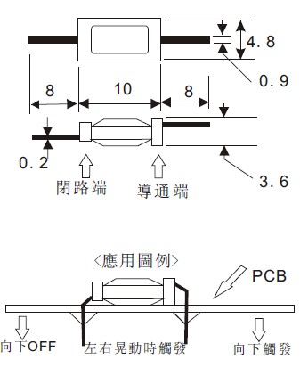 2*本開關(guān) 使用金屬材質(zhì)製造 電氣特性與水銀開關(guān)近似