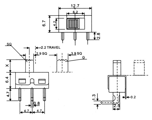 當前位置:撥動開關 >> 舊版產品 >> 豎柄撥動開關 >> 撥動開關SS-12D06